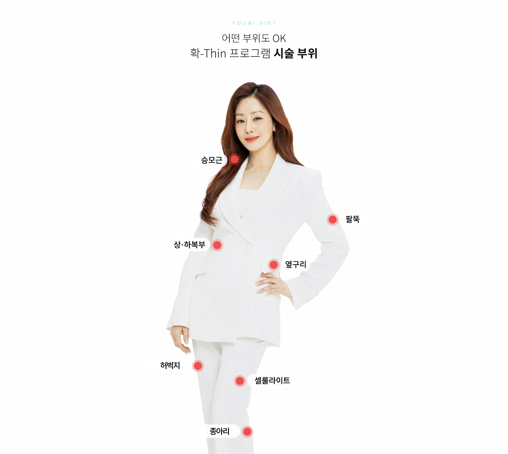 확씬 다이어트 프로그램은 유앤아이만의 프리미엄 다이어트 패키지로 체형에 맞춰 1:1 맞춤 시술이 가능합니다.